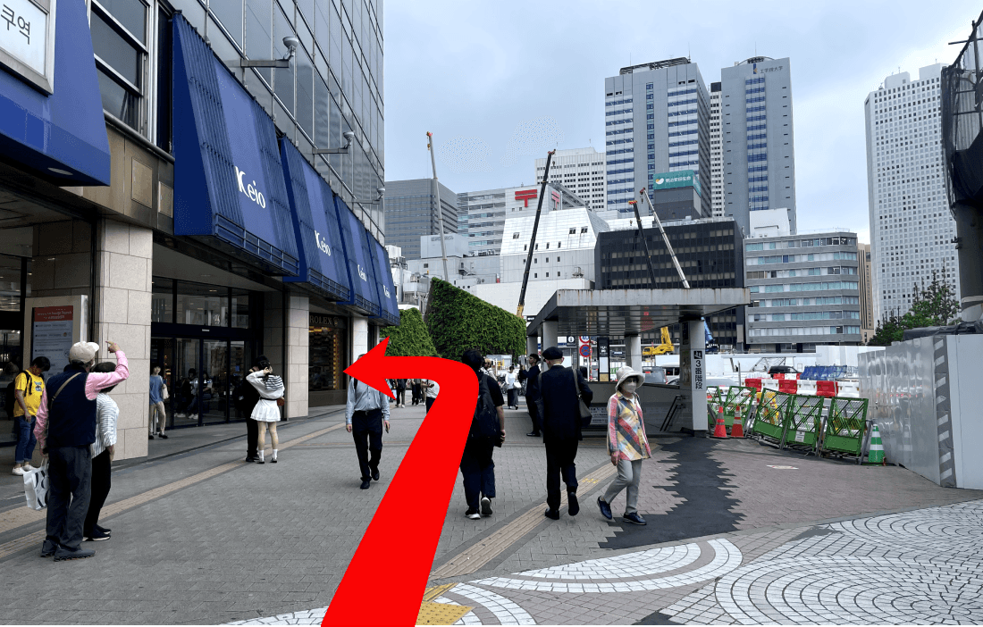 出口を出て京王百貨店に沿って左奥へ進みます。